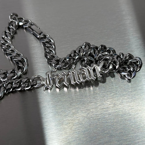 Solid 925 sterling silver Fenian, mounted on a 18 inch stainless steel Cuban chain 9mm wide.